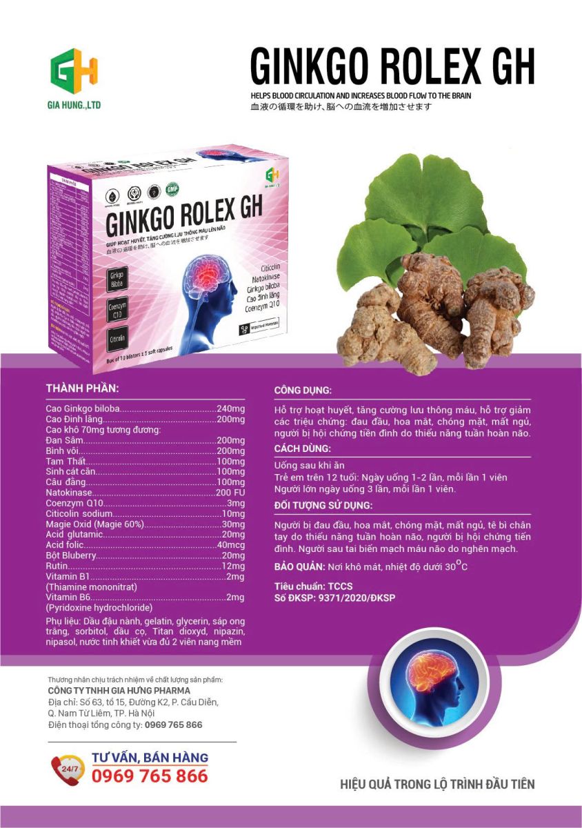 COMBO 2 hộp- Ginkgo Rolex GH ( Tuần hoàn não)